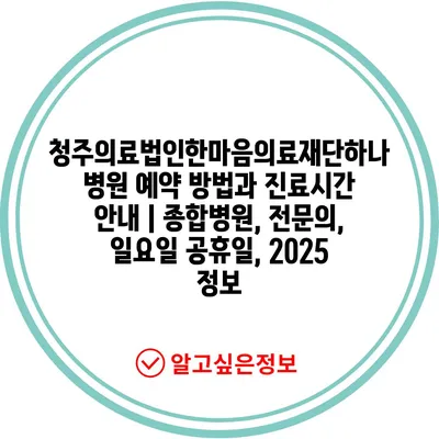 청주의료법인한마음의료재단하나병원 예약 방법과 진료시간 안내 | 종합병원, 전문의, 일요일 공휴일, 2025 정보