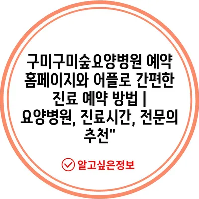 구미구미숲요양병원 예약 홈페이지와 어플로 간편한 진료 예약 방법 | 요양병원, 진료시간, 전문의 추천”