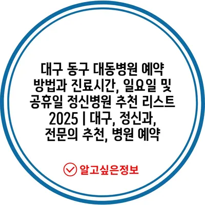 대구 동구 대동병원 예약 방법과 진료시간, 일요일 및 공휴일 정신병원 추천 리스트 2025 | 대구, 정신과, 전문의 추천, 병원 예약