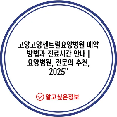 고양고양센트럴요양병원 예약 방법과 진료시간 안내 | 요양병원, 전문의 추천, 2025″