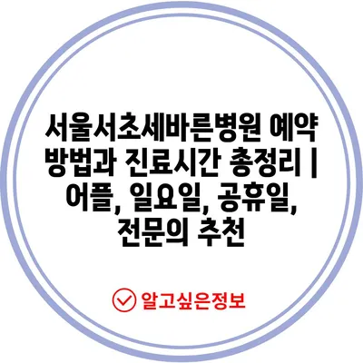 서울서초세바른병원 예약 방법과 진료시간 총정리 | 어플, 일요일, 공휴일, 전문의 추천