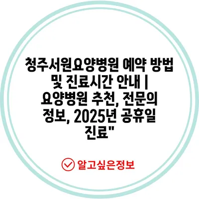 청주서원요양병원 예약 방법 및 진료시간 안내 | 요양병원 추천, 전문의 정보, 2025년 공휴일 진료”
