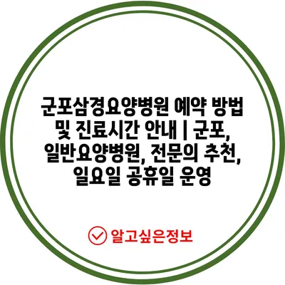 군포삼경요양병원 예약 방법 및 진료시간 안내 | 군포, 일반요양병원, 전문의 추천, 일요일 공휴일 운영