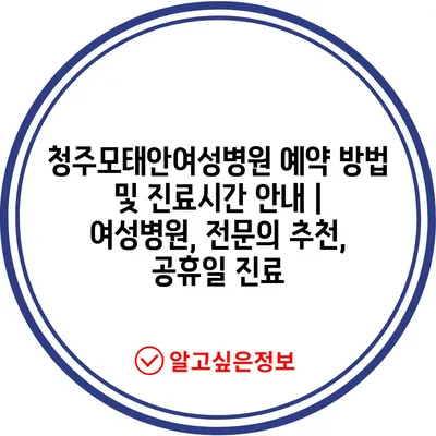 청주모태안여성병원 예약 방법 및 진료시간 안내 | 여성병원, 전문의 추천, 공휴일 진료