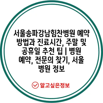 서울송파강남힘찬병원 예약 방법과 진료시간, 주말 및 공휴일 추천 팁 | 병원 예약, 전문의 찾기, 서울 병원 정보