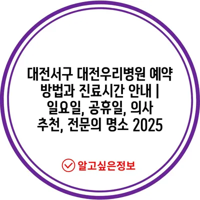 대전서구 대전우리병원 예약 방법과 진료시간 안내 | 일요일, 공휴일, 의사 추천, 전문의 명소 2025
