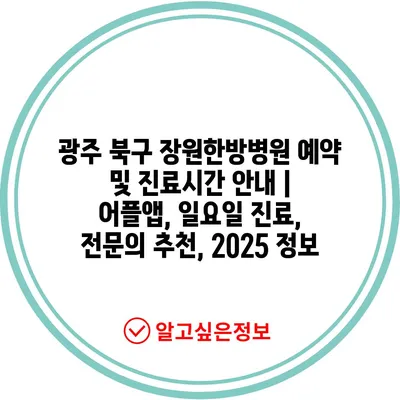광주 북구 장원한방병원 예약 및 진료시간 안내 | 어플앱, 일요일 진료, 전문의 추천, 2025 정보