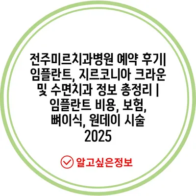 전주미르치과병원 예약 후기| 임플란트, 지르코니아 크라운 및 수면치과 정보 총정리 | 임플란트 비용, 보험, 뼈이식, 원데이 시술 2025