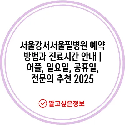 서울강서서울필병원 예약 방법과 진료시간 안내 | 어플, 일요일, 공휴일, 전문의 추천 2025