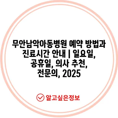 무안남악아동병원 예약 방법과 진료시간 안내 | 일요일, 공휴일, 의사 추천, 전문의, 2025
