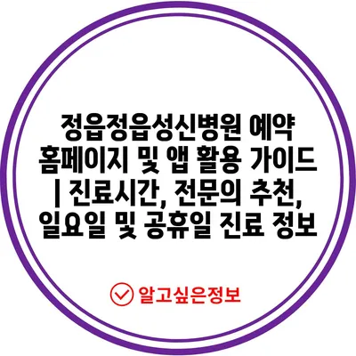 정읍정읍성신병원 예약 홈페이지 및 앱 활용 가이드 | 진료시간, 전문의 추천, 일요일 및 공휴일 진료 정보