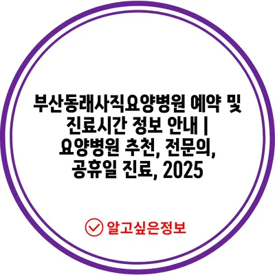 부산동래사직요양병원 예약 및 진료시간 정보 안내 | 요양병원 추천, 전문의, 공휴일 진료, 2025
