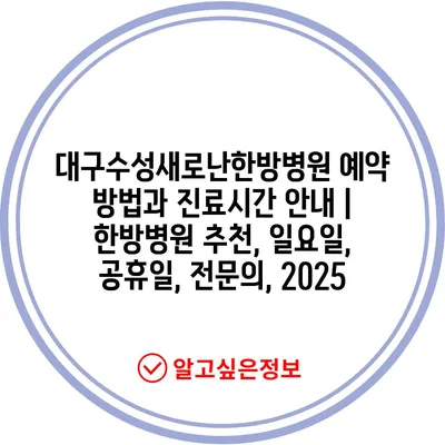 대구수성새로난한방병원 예약 방법과 진료시간 안내 | 한방병원 추천, 일요일, 공휴일, 전문의, 2025
