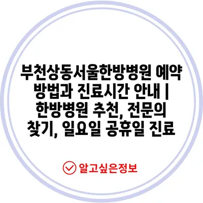 부천상동서울한방병원 예약 방법과 진료시간 안내 | 한방병원 추천, 전문의 찾기, 일요일 공휴일 진료