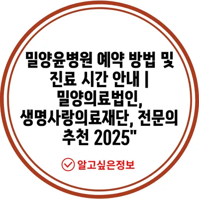 밀양윤병원 예약 방법 및 진료 시간 안내 | 밀양의료법인, 생명사랑의료재단, 전문의 추천 2025″