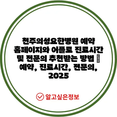 천주의성요한병원 예약 홈페이지와 어플로 진료시간 및 전문의 추천받는 방법 | 예약, 진료시간, 전문의, 2025