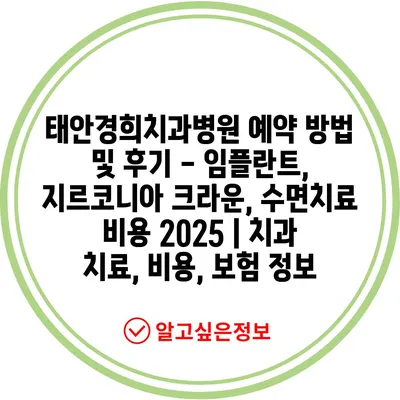 태안경희치과병원 예약 방법 및 후기 – 임플란트, 지르코니아 크라운, 수면치료 비용 2025 | 치과 치료, 비용, 보험 정보