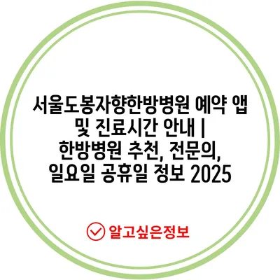 서울도봉자향한방병원 예약 앱 및 진료시간 안내 | 한방병원 추천, 전문의, 일요일 공휴일 정보 2025