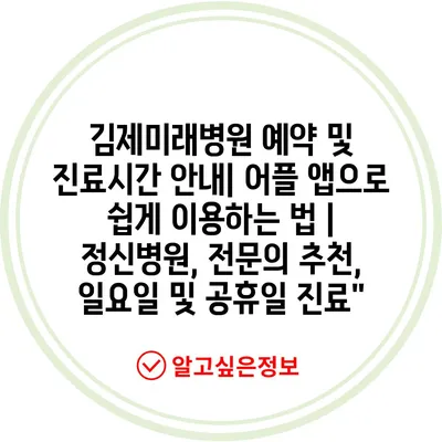 김제미래병원 예약 및 진료시간 안내| 어플 앱으로 쉽게 이용하는 법 | 정신병원, 전문의 추천, 일요일 및 공휴일 진료”
