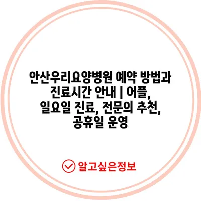 안산우리요양병원 예약 방법과 진료시간 안내 | 어플, 일요일 진료, 전문의 추천, 공휴일 운영