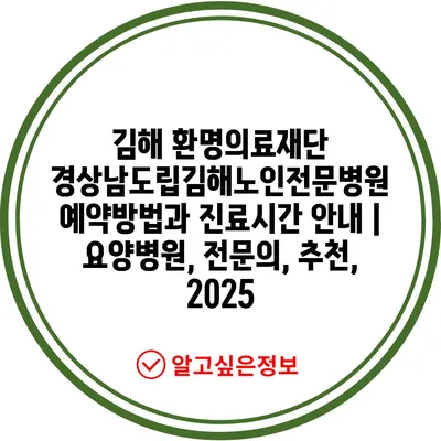 김해 환명의료재단 경상남도립김해노인전문병원 예약방법과 진료시간 안내 | 요양병원, 전문의, 추천, 2025