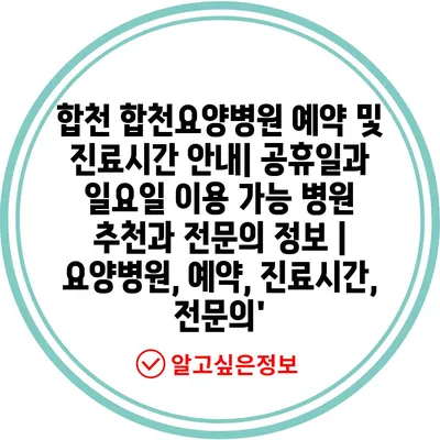 상주의료법인 성심의료재단 늘푸른병원 예약 방법과 진료시간 안내 | 예약 홈페이지, 전문의 추천, 일요일 및 공휴일 진료