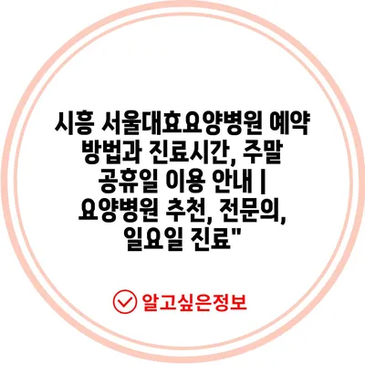 시흥 서울대효요양병원 예약 방법과 진료시간, 주말 공휴일 이용 안내 | 요양병원 추천, 전문의, 일요일 진료”