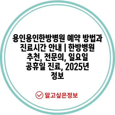 용인용인한방병원 예약 방법과 진료시간 안내 | 한방병원 추천, 전문의, 일요일 공휴일 진료, 2025년 정보