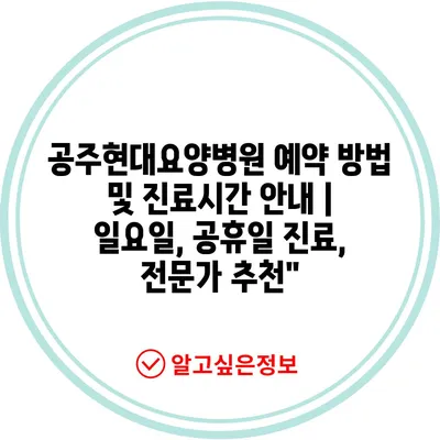 공주현대요양병원 예약 방법 및 진료시간 안내 | 일요일, 공휴일 진료, 전문가 추천”