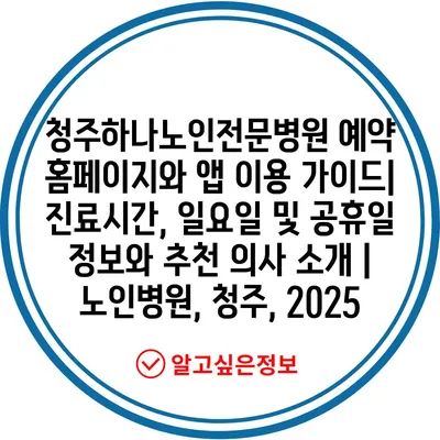 청주하나노인전문병원 예약 홈페이지와 앱 이용 가이드| 진료시간, 일요일 및 공휴일 정보와 추천 의사 소개 | 노인병원, 청주, 2025