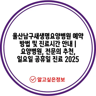 울산남구새생명요양병원 예약 방법 및 진료시간 안내 | 요양병원, 전문의 추천, 일요일 공휴일 진료 2025