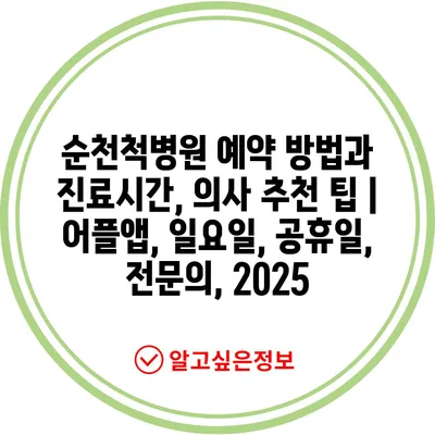 순천척병원 예약 방법과 진료시간, 의사 추천 팁 | 어플앱, 일요일, 공휴일, 전문의, 2025