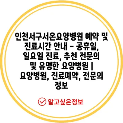 인천서구서온요양병원 예약 및 진료시간 안내 – 공휴일, 일요일 진료, 추천 전문의 및 유명한 요양병원 | 요양병원, 진료예약, 전문의 정보