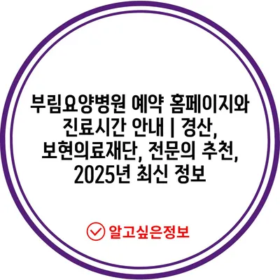 부림요양병원 예약 홈페이지와 진료시간 안내 | 경산, 보현의료재단, 전문의 추천, 2025년 최신 정보