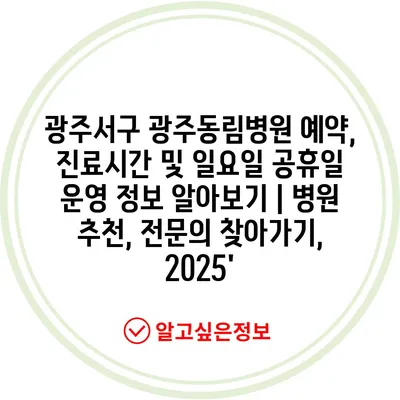 광주서구 광주동림병원 예약, 진료시간 및 일요일 공휴일 운영 정보 알아보기 | 병원 추천, 전문의 찾아가기, 2025′
