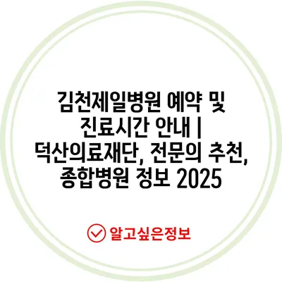 김천제일병원 예약 및 진료시간 안내 | 덕산의료재단, 전문의 추천, 종합병원 정보 2025