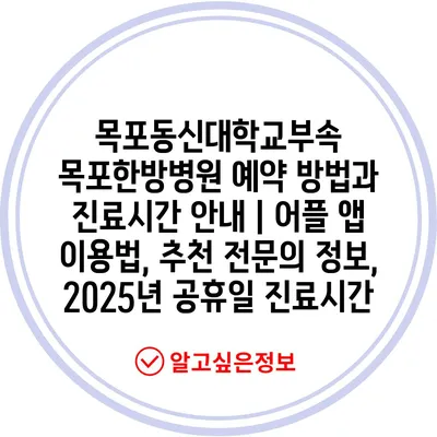 목포동신대학교부속 목포한방병원 예약 방법과 진료시간 안내 | 어플 앱 이용법, 추천 전문의 정보, 2025년 공휴일 진료시간